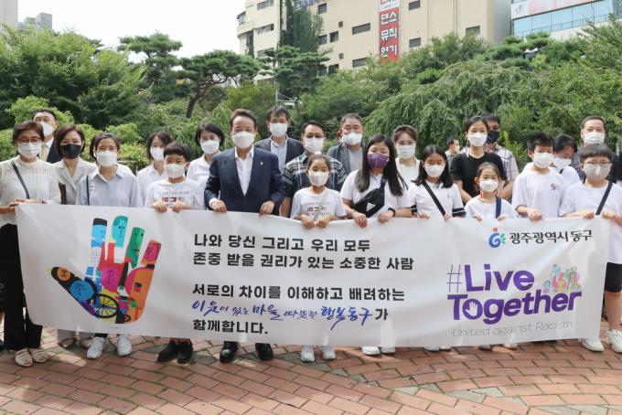 [È£³²´º½º¶óÀÎ = ¼ÀºÈ« ±âÀÚ] ÀÓÅà ±¤ÁÖ µ¿±¸Ã»ÀåÀÌ µ¿±¸ Áֹεé°ú ÇÔ²² ÀÎÁ¾Â÷º°¿¡ ¹Ý´ëÇÏ´Â ±Û·Î¹ú Ä·ÆäÀÎ ¡®¸®ºêÅõ°Ô´õ(Live Together)¡¯ 縰Áö¿¡ µ¿ÂüÇß´Ù.