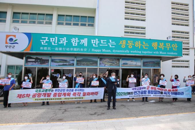 [È£³²´º½º¶óÀÎ = ¼ÀºÈ« ±âÀÚ] ¹«¾È±¹Á¦°øÇ×Ȱ¼ºÈÃßÁøÀ§¿øÈ¸(ÀÌÇÏ¡°ÃßÁøÀ§¡±)´Â 19ÀÏ ¹«¾È±ºÃ» ¾Õ¿¡¼ Àü³²µµ¹Î°ú ¹«¾È±º¹ÎÀÇ ÀǰßÀ» ¹«½ÃÇϸ鼱îÁö Á¦6Â÷ °øÇ×°³¹ß Á¾ÇÕ°èȹ¾È¿¡ ¹«¾È±¹Á¦°øÇ×°ú ±¤Áֹΰ£°øÇ× ÅëÇÕÀÌÀü ½Ã±â¸¦ ±º °øÇ× ÀÌÀü ÃßÁø »óȲ, Áö¿ª ÀÇ°ß µîÀ» Á¾ÇÕ °í·ÁÇÏ¿© °áÁ¤ÇÑ´Ù´Â ¹®±¸¸¦ »ðÀÔÇÏ·Á´Â ±¹Åä±³ÅëºÎ¸¦ ÀÌÇØÇÒ ¼ö ¾ø´Ù¸ç ¼º¸í¼¸¦ ¹ßÇ¥Çß´Ù.