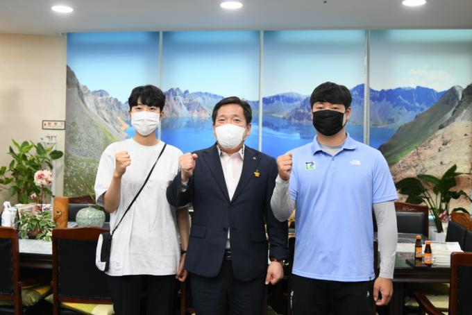 [È£³²´º½º¶óÀÎ = ¼ÀºÈ« ±âÀÚ] µµÄì¿Ã¸²ÇÈ ¾ç±Ã 3°ü¿Õ¿¡ ¿À¸¥ ½ºÆ÷Ã÷ ½ºÅ¸ ¾È»ê ¼±¼ö°¡ 19ÀÏ ¿ÀÈÄ 3½Ã 30ºÐ²² ±¤ÁÖ ³²±¸Ã»À» ±ô¦ ¹æ¹®, ±èº´³» ±¸Ã»Àå¿¡°Ô °¨»çÀÇ ¸¶À½À» ÀüÇß´Ù.