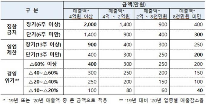¿µ¾÷Á¦ÇÑÀº °°Àº ±â°£ ¡®13ÁÖ ÀÌ»ó¡¯(Àå±â), ¡®13ÁÖ ¹Ì¸¸¡¯(´Ü±â)À¸·Î ±¸ºÐ, ¸ÅÃâÀÌ °¨¼ÒÇÑ »ç¾÷ü¿¡ 200¸¸¿ø¿¡¼ ÃÖ´ë 900¸¸¿ø±îÁö Áö¿øÇÑ´Ù.