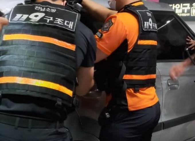 [È£³²´º½º¶óÀÎ = ¼ÀºÈ« ±âÀÚ] ¼øÃµ¼Ò¹æ¼(¼Àå Çϼöö) 119±¸Á¶´ë´Â 20ÀÏ 12½Ã 28ºÐ°æ, ¼øÃµ ¡Û¡Û¹éÈÁ¡ ÁöÇÏ ÁÖÂ÷Àå¿¡¼ Â÷·® ¹®ÀÌ Àá°Ü ¾È¿¡ °¤Èù »ýÈÄ 10°³¿ù µÈ ¾ÆÀ̸¦ ¾ÈÀüÇÏ°Ô ±¸Á¶ÇÏ¿´´Ù°í ¹àÇû´Ù.