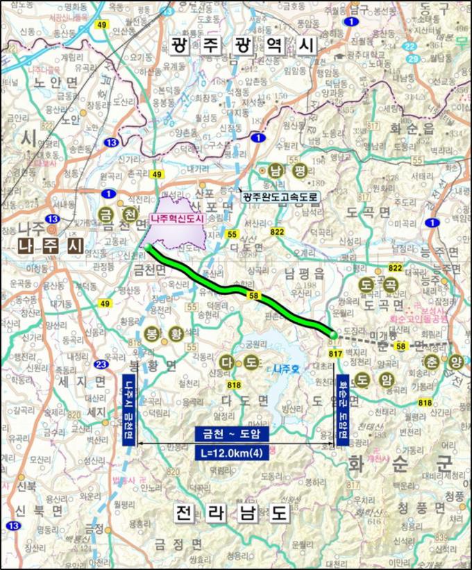 ³ªÁÖ½Ã(½ÃÀå °ÀαÔ)´Â Áö³ 24ÀÏ ¡®³ªÁÖ ±Ýõ¸é ~ ȼø µµ¾Ï¸é¡¯ ÃÑ 12km±¸°£, ±¹Áöµµ 58È£¼± 4Â÷¼± µµ·Î ½Å¼³»ç¾÷ÀÌ ±âȹÀçÁ¤ºÎ ¿¹ºñŸ´ç¼º Á¶»ç¸¦ ÃÖÁ¾ Åë°úÇß´Ù°í 26ÀÏ ¹àÇû´Ù.