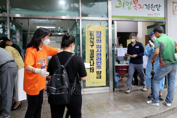 [È£³²´º½º¶óÀÎ = ¼ÀºÈ« ±âÀÚ] ±¤Áֽà ±¤»ê±¸(±¸Ã»Àå ±è»ïÈ£) ¿Ü±¹ÀÎÁֹΠÀç´É±âºÎ´ÜÀÌ ¹æ¿ªÇöÀå °÷°÷À» ´©ºñ¸ç Äڷγª19 È®»ê Â÷´Ü¿¡ Å« ÈûÀ» º¸Å°í ÀÖ´Ù.