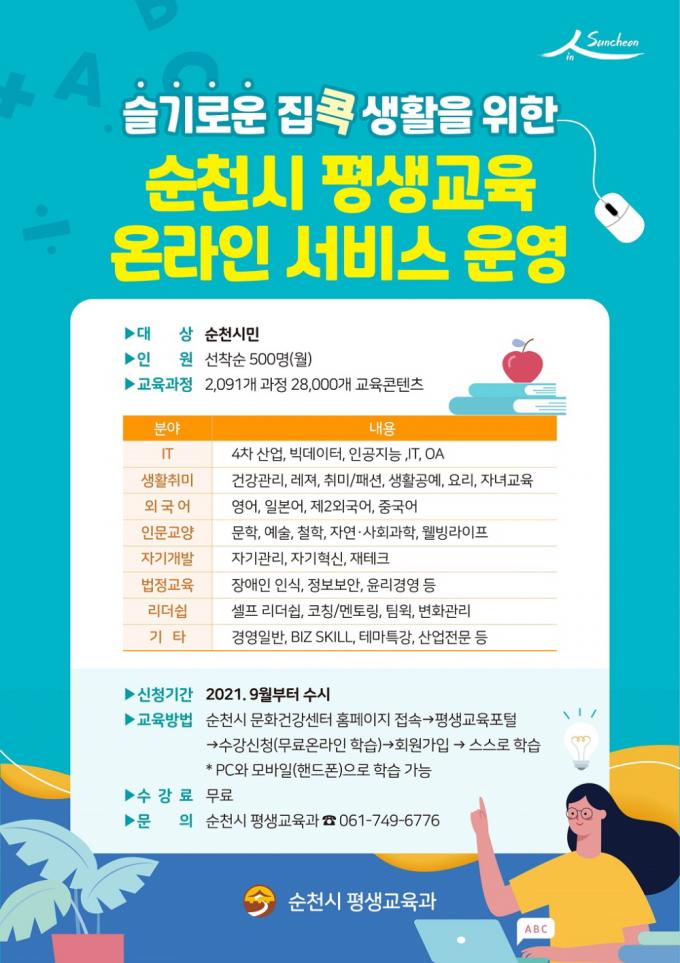 [È£³²´º½º¶óÀÎ = ¼ÀºÈ« ±âÀÚ] ¼øÃµ½Ã(½ÃÀå Çã¼®)´Â ½Ã¹Î ´©±¸³ª Áö¼ÓÀûÀÎ ÇнÀÀ» ÇÒ ¼ö ÀÖµµ·Ï ±³À° Á¢±Ù¼ºÀÌ ³ôÀº ¡®¿Â¶óÀÎ ±³À°°úÁ¤¡¯À» µµÀÔÇÏ¿© 9¿ùºÎÅÍ ¹«·á·Î ±³À°¼ºñ½º¸¦ Á¦°øÇÑ´Ù.