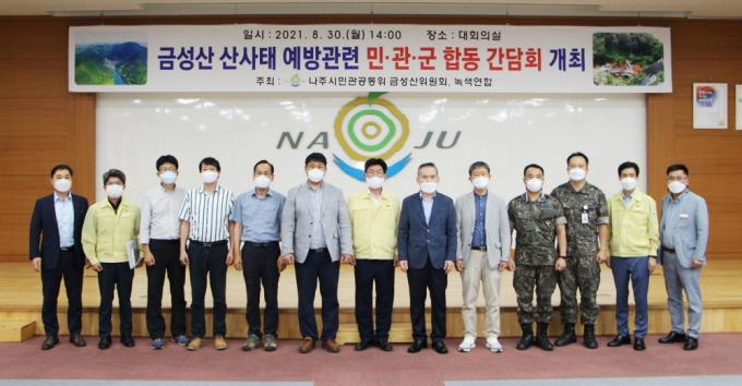 ³ªÁÖ½Ã(½ÃÀå °ÀαÔ)´Â 30ÀÏ ¿ÀÈÄ 2½Ã û»ç ´ëȸÀǽǿ¡¼ ¹Î°ü°øµ¿À§¿øÈ¸ ±Ý¼º»êÀ§¿øÈ¸¿Í ȯ°æ´ÜüÀÎ ³ì»ö¿¬ÇÕ ÁÖÃÖ·Î ¡®±Ý¼º»ê »ê»çÅ ¿¹¹æ °ü·Ã ¹Î¡¤°ü¡¤±º ÇÕµ¿ °£´ãȸ¡¯¸¦ °³ÃÖÇß´Ù°í ¹àÇû´Ù.