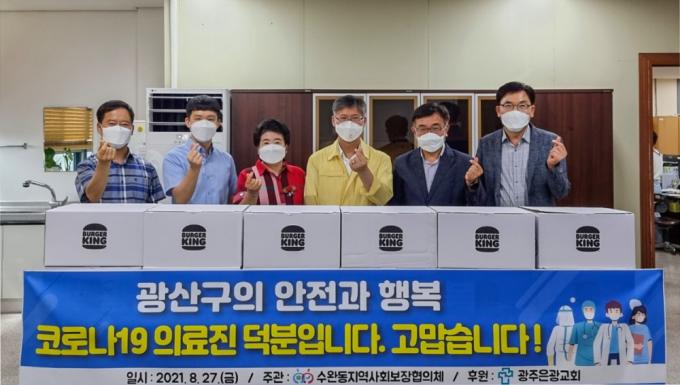 [È£³²´º½º¶óÀÎ = ¼ÀºÈ« ±âÀÚ] ±¤Áֽà ±¤»ê±¸ ¼ö¿Ïµ¿ Áö¿ª»çȸº¸ÀåÇùÀÇü(À§¿øÀå ±è±â¼ø)´Â ÃÖ±Ù ±¤»ê±¸ ¼±º°Áø·á¼Ò¿¡¼ ±Ù¹«ÇÏ´Â ÀÇ·áÁøÀ» °Ý·ÁÇϱâ À§ÇØ ¡®Çܹö°Å ¼¼Æ®¡¯ 160°³(150¸¸ ¿ø »ó´ç)¸¦ Áö¿øÇß´Ù.