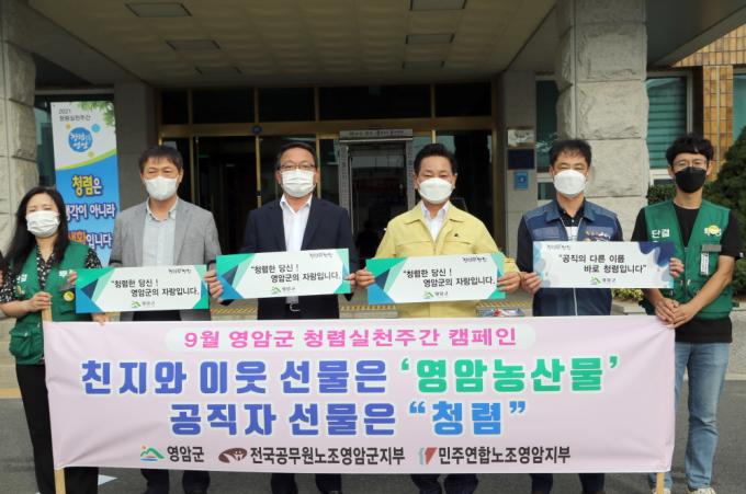 À̳¯ Çà»ç´Â Ãß¼®¸íÀýÀ» ¾ÕµÎ°í °øÁ÷ÀÚÀÇ ¡®¼±¹° ¾È ÁÖ°í ¾È ¹Þ±â¡¯ ½ÇõÀ» ´ÙÁüÇÏ¸é¼ °øÁ÷ ³»ºÎÀÇ Ã»·Å ¹®È¸¦ È®»êÇϰíÀÚ ÇÏ´Â È«º¸È°µ¿ÀÇ ÀÏȯÀ¸·Î Àü±¹°ø¹«¿ø³ëÁ¶ ¿µ¾Ï±ºÁöºÎ¿Í ¹ÎÁÖ¿¬ÇÕ³ëÁ¶ ¿µ¾ÏÁöºÎ°¡ ÇÔ²² Âü¿©ÇÏ¿´´Ù.