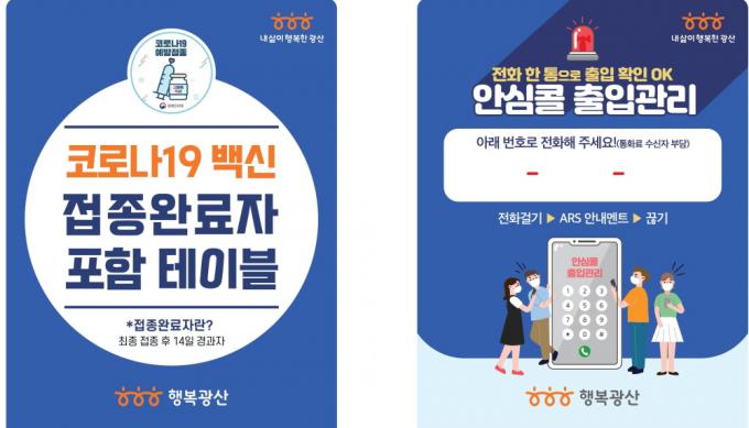 ±¤»ê±¸°¡ Á¦ÀÛÇÑ ¾È³»ÆÇ¿¡´Â ¡®Äڷγª19 ¹é½Å Á¢Á¾¿Ï·áÀÚ Æ÷ÇÔ Å×ÀÌºí¡¯À̶õ ¹®±¸¿Í ÇÔ²² ¡®±¤»ê±¸ ¾È½ÉÄÝ¡¯ ¹øÈ£¸¦ ±âÀçÇÒ ¼ö ÀÖ´Â ºÎºÐÀÌ º°µµ·Î ¸¶·ÃµÆ´Ù.