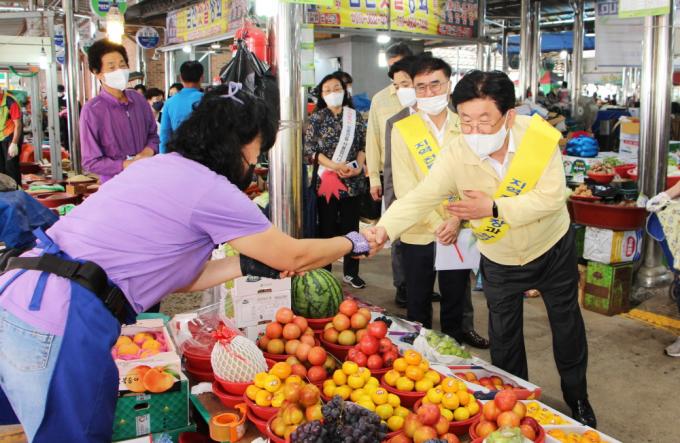 ° ½ÃÀåÀº ¾ÈÀüµµ½Ã°Ç¼³±¹, º¸°Ç¼Ò, ³ó¾÷±â¼ú¼¾ÅÍ Á÷¿øµé°ú ÀåÀ» µ¹¸ç Á¦¼ö¿ëǰ, ¸Ô°Å¸®¸¦ ±¸¸ÅÇÏ°í »óÀÎȸ·ÎºÎÅÍ ¹°°¡º¯µ¿ ÃßÀÌ¿Í ¾Ö·Î»çÇ×À» ûÃëÇß´Ù.