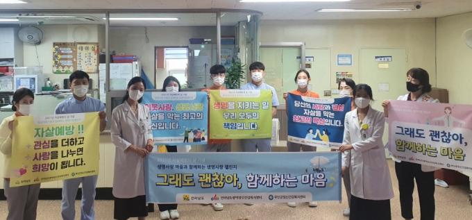 ÀÀ±ÞÀÇ·á±â°üÀÎ ¹«¾ÈÁ¾ÇÕº´¿øÀº »ý¸í»ç¶û °ü·Ã ¹®±¸ Çö¼ö¸·À» Ȱ¿ëÇØ Á¤½Åº´µ¿ ÀÇ·áÁø°ú Á¤½Å°Ç°º¹Áö¼¾ÅÍ Á÷¿øµéÀÌ ÇÔ²² »çÁøÀ» Âï´Â Âü¿©Çü °ø¸ðÀü¿¡ Âü°¡ÇÑ °á°ú ÀÀ±Þ½Ç »ý¸íÀÌÀ½(ÀÇ·á±â°ü) ºÎ¹® ¿ì¼ö ±â°ü¿¡ ¼±Á¤µÇ´Â ¼º°ú¸¦ °ÅµÎ¾ú´Ù.