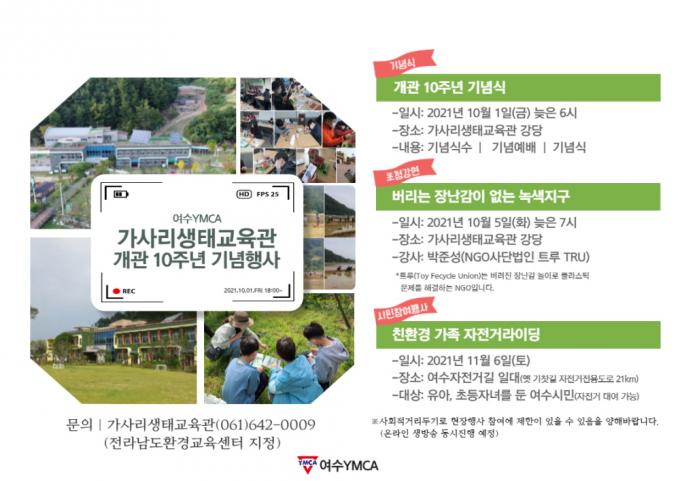 [È£³²´º½º¶óÀÎ = ¼ÀºÈ« ±âÀÚ] ¿©¼öYMCA°¡»ç¸®»ýű³À°°üÀÌ °³°ü 10ÁÖ³âÀ» ¸ÂÀÌÇÏ¿© 10¿ù1ÀÏ(±Ý) 10Áֳ⠱â³ä½Ä, 10¿ù5ÀÏ(È) ¿ÀÈÄ7½Ã ¹ÚÁؼº´ëÇ¥ (NGO»ç´Ü¹ýÀÎ Æ®·ç)ÀÇ ¡®Àå³°¨ÀÌ ¾ø´Â ³ì»öÁö±¸¡¯ ÃÊû°¿¬, 11¿ù 6ÀÏ(Åä) À¯¾Æ¿Í ÃʵîÇлý Àڳడ Âü¿©Çϴ ģȯ°æ°¡Á· ÀÚÀü°Å ¶óÀ̵ùÇà»ç¸¦ ´Ùä·Ó°Ô ÁøÇàÇÑ´Ù.