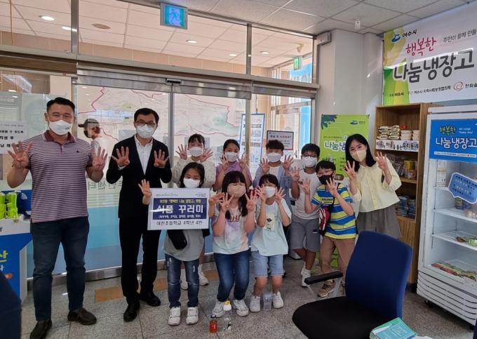 [È£³²´º½º¶óÀÎ = ¼ÀºÈ« ±âÀÚ] ¿©¼ö½Ã ¿©Ãµµ¿Áֹμ¾ÅÍ¿¡ Áö³ 6ÀÏ ¿©ÃµÃʵîÇб³ ÇлýµéÀÌ Ã£¾Æ¿Í Áֹμ¾ÅÍ ³»¿¡ ¼³Ä¡µÈ ÇູÇÑ ¡®³ª´® ³ÃÀå°í¡¯¿¡ »ç¿ëÇØ ´Þ¶ó¸ç ½Äǰ²Ù·¯¹Ì¸¦ ³»¹Ð¾ú´Ù.