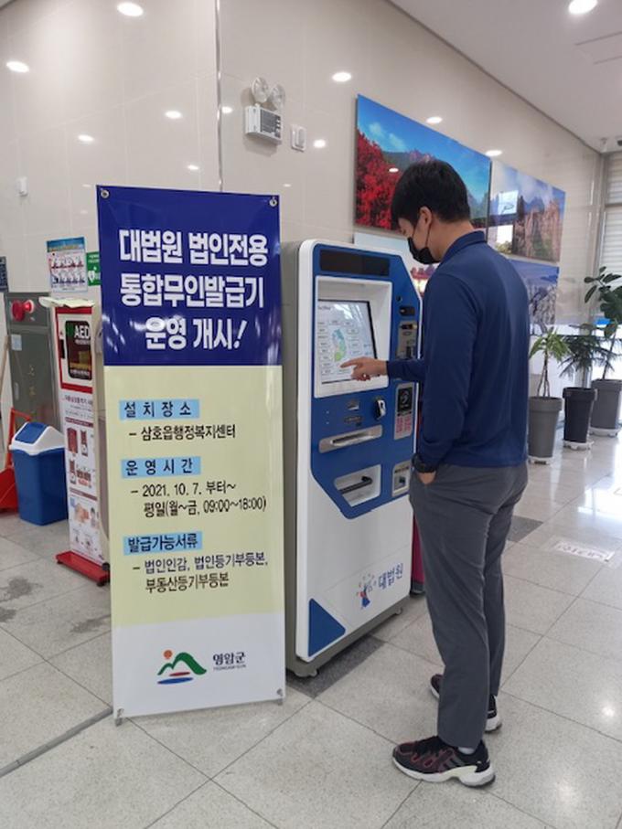 [È£³²´º½º¶óÀÎ = ¼ÀºÈ« ±âÀÚ] ¿µ¾Ï±ºÀº »ïÈ£À¾ ÇàÁ¤º¹Áö¼¾ÅÍ¿¡ °ü³» ±â¾÷ü ¹ýÀÎ °ü·Ã ¼·ù ¹ß±Þ ÆíÀÇ °³¼±À» À§ÇÏ¿© µµ³»¿¡¼´Â óÀ½À¸·Î ¹ýÀÎÀü¿ë ¹«Àιοø¹ß±Þ±â¸¦ 10¿ù7ÀϺÎÅÍ ¿î¿µÇÑ´Ù°í ¹àÇû´Ù.
