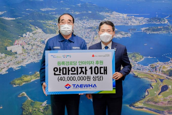 [È£³²´º½º¶óÀÎ = ¼ÀºÈ« ±âÀÚ] (ÁÖ)ÅÂÈ»ê¾÷(ȸÀå ¿À½Â¸¸)ÀÌ 15ÀÏ ¿©¼ö½ÃûÀ» ã¾Æ ¾î¸£½ÅµéÀÇ ÆíÀÇ¿Í °Ç°Áö¿øÀ» À§ÇÑ 4000¸¸ ¿ø »ó´çÀÇ ¾È¸¶ÀÇÀÚ 10´ë ÈÄ¿øÁõ¼¸¦ ±Ç¿ÀºÀ ¿©¼ö½ÃÀå¿¡°Ô Àü´ÞÇß´Ù.