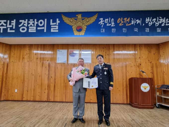 ±èÀç±Ô Àü³²°æÂûûÀåÀº ¡°Á¦76Áֳ⠰æÂûÀÇ ³¯À» ¸Â¾Æ ½ÇÁ¾»ç°Ç ÇØ°á¿¡ µµ¿òÀ» ÁÖ¾î »çȸ ¾ÈÀü°ú Ä¡¾È È®º¸¿¡ ±â¿©ÇØÁֽŠ¹Ú¼º±â ÁÖ¹«°ü´Ô²² Àü³²°æÂûÀ» ´ëÇ¥ÇÏ¿© °¨»çÀÇ ¸»¾¸À» µå¸°´Ù¡±°í ÀüÇß´Ù.