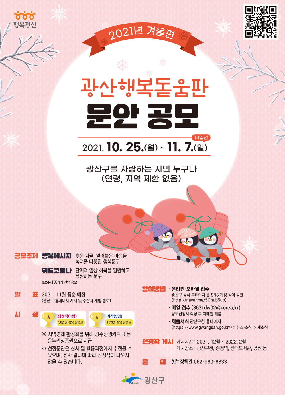 ÁÖÁ¦´Â Çູ¸Þ½ÃÁö¿Í À§µåÄڷγª(With Corona) µÎ °¡Áö, °ø¸ð ±â°£Àº 25ÀϺÎÅÍ 11¿ù7ÀϱîÁö´Ù. Ãß¿î °Ü¿ï, ¾ó¾îºÙÀº ¸¶À½À» ³ì¿©ÁÙ µû¶æÇÑ Çູ¹®±¸³ª ´Ü°èÀû ÀÏ»ó ȸº¹À» ¿°¿øÇϰí ÀÀ¿øÇÏ´Â ¹®±¸ Áß Çϳª¸¦ ¼±ÅÃÇÏ¿© Âü¿©ÇÏ¸é µÈ´Ù.