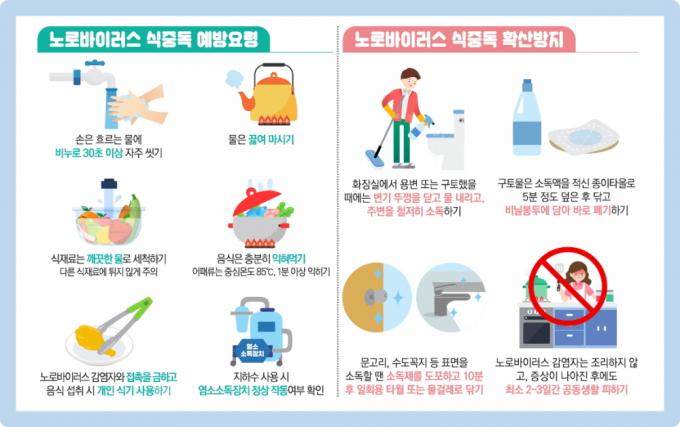 ÇÑÆí, ¿©¼ö½Ã °ü°èÀÚ´Â ³ë·Î¹ÙÀÌ·¯½º ½ÄÁßµ¶À» ¿¹¹æÇϱâ À§ÇØ ¡°¿Ã¹Ù¸¥ ¼Õ ¾Ä±â »ýȰÈ, ½ÄÀç·á´Â ±ú²ýÇÑ ¹°·Î ¼¼Ã´, À½½ÄÀº ÃæºÐÈ÷ ÀÍÇô ¸Ô±â, ±¸Åä, ¼³»ç Áõ»ó ½Ã Á¶¸®ÇÏÁö ¾Ê±â, ±¸Åä¹° ¹× ÁÖº¯ ȯ°æ ¼Òµ¶ÇÏ±â µî ³ë·Î¹ÙÀÌ·¯½º ¿¹¹æ¼öÄ¢À» ½ÇÃµÇØ ÁÙ °Í¡±À» ´çºÎÇß´Ù.
