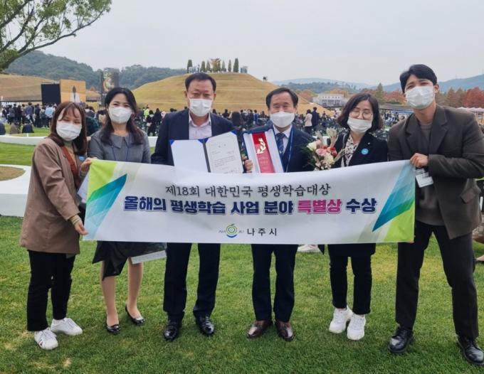 Àü¶ó³²µµ ³ªÁÖ½Ã(½ÃÀå °ÀαÔ)´Â 5ÀÏ ±³À°ºÎ°¡ ÁÖÃÖÇÏ°í ±¹°¡Æò»ý±³À°ÁøÈï¿øÀÌ ÁÖ°üÇÏ´Â ¡®Á¦18ȸ ´ëÇѹα¹ Æò»ýÇнÀ´ë»ó¡¯ ½Ã»ó½Ä¿¡¼ ¡®¿ÃÇØÀÇ Æò»ýÇнÀ »ç¾÷ºÎ¹®¡¯ Ưº°»óÀ» ¼ö»óÇß´Ù°í ¹àÇû´Ù.