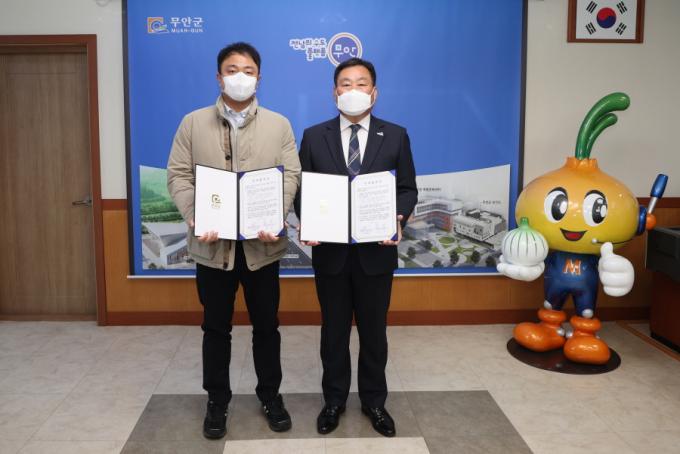 [È£³²´º½º¶óÀÎ = ¼ÀºÈ« ±âÀÚ] ¹«¾È±ºÀº 9ÀÏ ±ºÃ» ±º¼ö½Ç¿¡¼ ¸ùÅºÆ¯È³ó°ø´ÜÁö ÀÔÁÖ¸¦ Èñ¸ÁÇÏ´Â (À¯)¿¡½º¿¡ÀÌÄ¡»ê¾÷, (À¯)¶ó¹Ù²Þ µî 2°³ ±â¾÷°ú ÅõÀÚÇù¾àÀ» ü°áÇß´Ù°í ¹àÇû´Ù.
