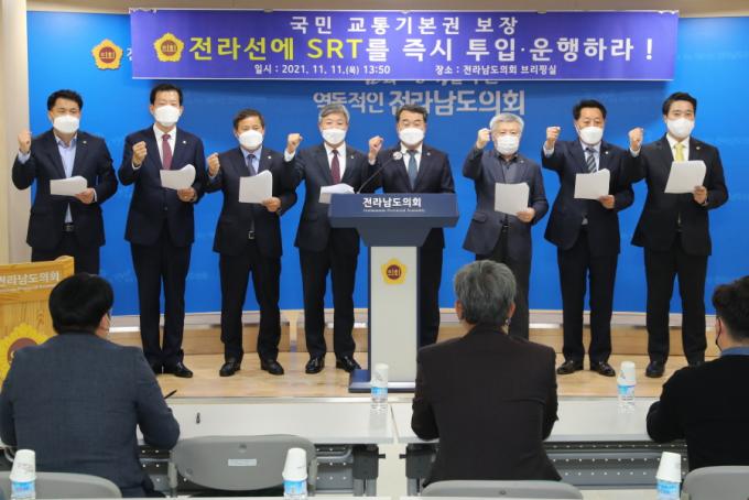 [È£³²´º½º¶óÀÎ = ¼ÀºÈ« ±âÀÚ] Àü¶ó³²µµÀÇȸ´Â 11ÀÏ, µµÀÇȸ ºê¸®Çνǿ¡¼ ±âÀÚȸ°ßÀ» °®°í ±¹¹Î ±³Åë±âº»±Ç º¸ÀåÀ» À§ÇÑ Àü¶ó¼± SRT ÅõÀÔ Ã˱¸ ¼º¸í¼¸¦ ¹ßÇ¥Çß´Ù.