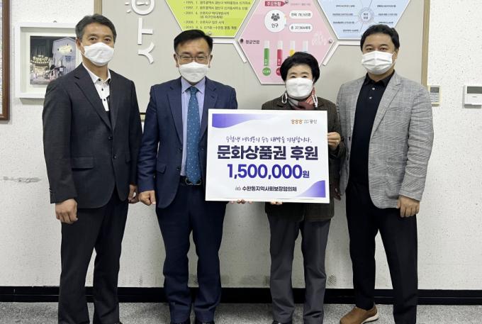 [È£³²´º½º¶óÀÎ = ¼ÀºÈ« ±âÀÚ] ±¤Áֽà ±¤»ê±¸ ¼ö¿Ïµ¿ Áö¿ª»çȸº¸ÀåÇùÀÇü(À§¿øÀå ±è±â¼ø)´Â Áö³ 10ÀÏ ´ëÇмöÇдɷ½ÃÇèÀ» ¾ÕµÐ µ¹º½ÀÌ¿ô °¡Á¤ °í3 ¼öÇè»ý 50¸íÀ» ÀÀ¿øÇÏ´Â ¶æÀ¸·Î 150¸¸ ¿ø »ó´çÀÇ ¹®È»óǰ±ÇÀ» ¼ö¿Ïµ¿ÇàÁ¤º¹Áö¼¾ÅÍ(µ¿Àå ¹Ú´ë±Ô)¿¡ Àü´ÞÇß´Ù.