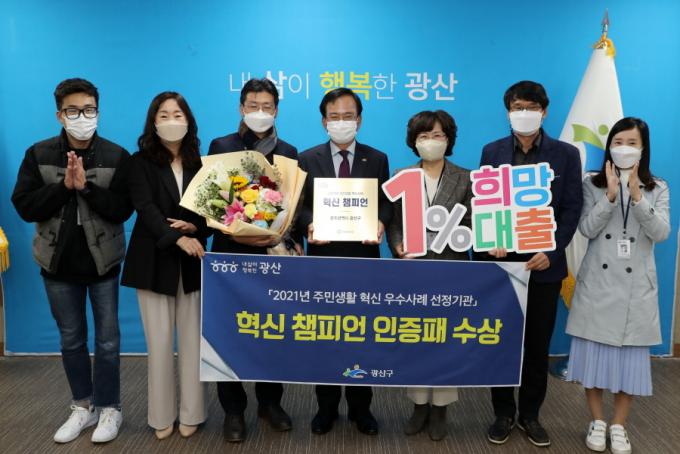 [È£³²´º½º¶óÀÎ = ¼ÀºÈ« ±âÀÚ] ±¤Áֽà ±¤»ê±¸(±¸Ã»Àå ±è»ïÈ£)´Â ÇàÁ¤¾ÈÀüºÎ°¡ ÁÖ°üÇÑ ¡®2021³â Áö¹æÇàÁ¤Çõ½Å À¯°ø Æ÷»ó ¼ö¿©½Ä¡¯ Çà»ç¿¡¼ Çõ½Å èÇǾð ÀÎÁõÆÐ¸¦ ¼ö»óÇß´Ù°í ¹àÇû´Ù.