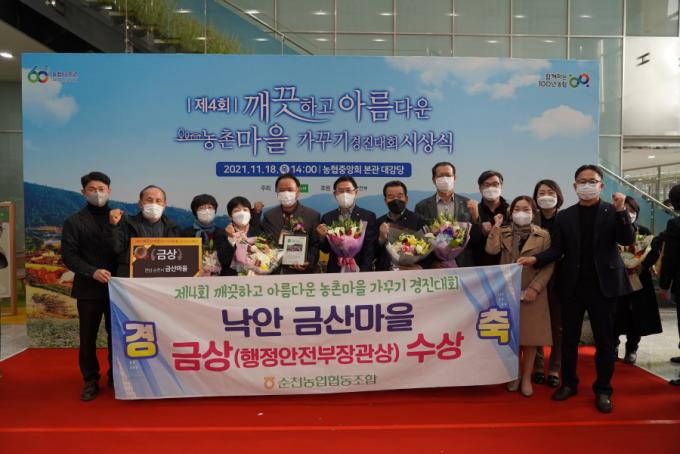 [È£³²´º½º¶óÀÎ = ¼ÀºÈ« ±âÀÚ] ¼øÃµ³óÇù(Á¶ÇÕÀå °¼ºÃ¤)Àº 18ÀÏ ³óÇùÁß¾Óȸ¿¡¼ ÁÖ°üÇÑ ¡°Á¦4ȸ ±ú²ýÇÏ°í ¾Æ¸§´Ù¿î ³óÃ̸¶À» °¡²Ù±â °æÁø´ëȸ¡±¿¡¼ ³«¾È ±Ý»ê¸¶À»ÀÌ ±Ý»ó(ÇàÁ¤¾ÈÁ¤ºÎ Àå°ü»ó)°ú ºÎ»óÀ¸·Î 2õ¸¸¿øÀ» ¹Þ¾Ò´Ù°í ¹àÇû´Ù.