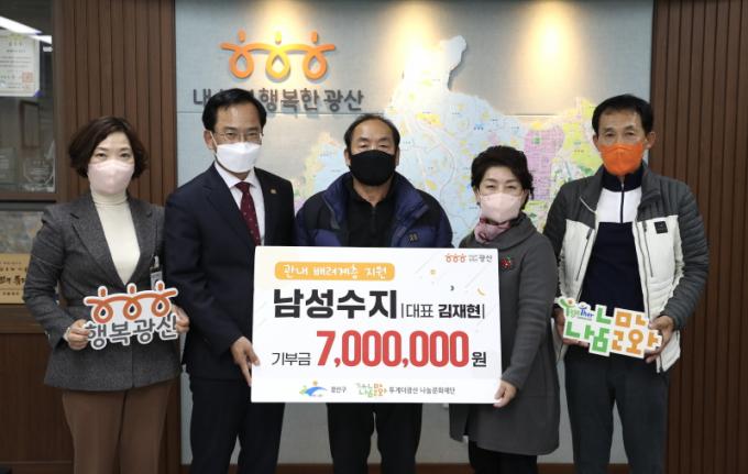 [È£³²´º½º¶óÀÎ = ¼ÀºÈ« ±âÀÚ] ±¤ÁÖ ±¤»ê±¸ Çϳ²»ê´Ü¿¡ ÀÖ´Â ³²¼º¼öÁö°¡ 23ÀÏ ±¤»ê±¸ ¹è·Á°èÃþ Áö¿øÀ» À§ÇØ 700¸¸ ¿øÀ» ÈÄ¿øÇÏ¿´´Ù.
