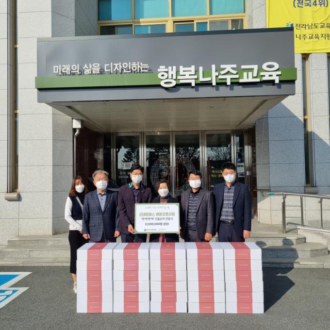 [È£³²´º½º¶óÀÎ = ¼ÀºÈ« ±âÀÚ] ±Â³×À̹ö½º Àü³²ÁߺÎÁöºÎ(ÁöºÎÀå À¯±â¿ë)´Â ³ªÁÖ±³À°Áö¿øÃ»(±³À°Àå ¹ÚÀ±ÀÚ)¿¡ Àú¼Òµæ °¡Á¤ ¿©¾Æ Áö¿øÀ» À§ÇÑ À§»ý¿ëǰ ¹× »ýÆÈǰ KIT ¡®¹Ý¦¹Ý¦ ¼±¹°»óÀÚ¡¯ 30°³¸¦ Àü´ÞÇß´Ù°í 30ÀÏ(È), ¹àÇû´Ù.