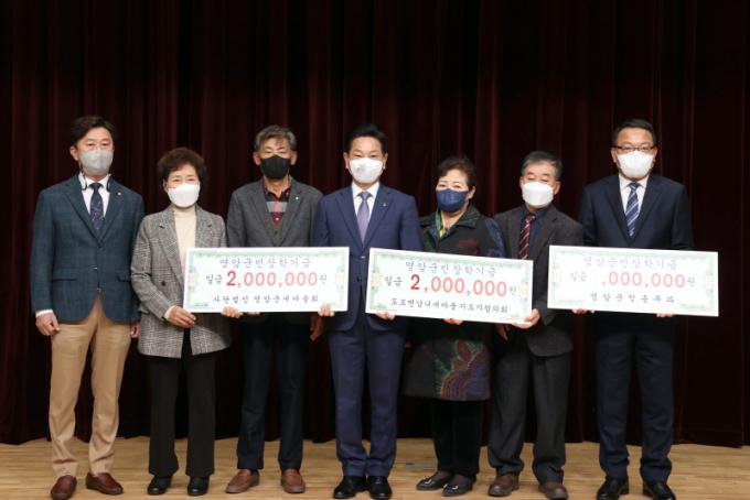 ƯÈ÷, À̹ø ÀåÇÐ±Ý ±âŹ½Ä¿¡ Âü¼®ÇÑ (»ç)¿µ¾Ï±º»õ¸¶À»È¸¿Í µµÆ÷¸é ³²³à»õ¸¶À»ÁöµµÀÚÇùÀÇȸ¿¡¼´Â ÀçȰ¿ëǰ ¿µ³ó¾²·¹±â¸¦ ¼ö°Å¡¤ÆÇ¸Å¸¦ ÅëÇØ ¾òÀº ¼öÀͱÝÀ¸·Î °¢°¢ 200¸¸¿ø¾¿À» ÀåÇбÝÀ¸·Î ÄèôÇÏ¿´°í, ¿µ¾Ï±ºÃ» Ãѹ«°ú´Â 2021³âµµ ´ë±Ô¸ð Åë°èÁ¶»ç ¾÷¹«¿ì¼ö±â°ü ǥâ¿¡ µû¸¥ Æ÷»ó±Ý 100¸¸¿øÀ» Áö¿ªÀÎÀç À°¼ºÀ» À§ÇØ ÀåÇбÝÀ» ±âŹÇÏ¿´´Ù.