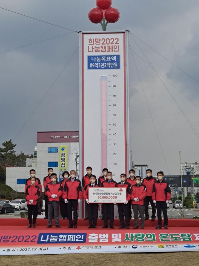 [È£³²´º½º¶óÀÎ = ¼ÀºÈ« ±âÀÚ] ¿©¼ö±¤¾çÇ׸¸°ø»ç(»çÀå Â÷¹Î½Ä)´Â 3ÀÏ Áö¿ª»çȸÀÇ º¹ÁöÃë¾à°èÃþ°ú »çȸº¹Áö½Ã¼³¿¡ ¿ÂÁ¤À» ÀüÇÏ´Â ¡®Èñ¸Á 2022 ³ª´®Ä·ÆäÀΡ¯ Àü³²µ¿ºÎ±Ç »ç¶ûÀÇ ¿ÂµµÅ¾ Á¦¸·½Ä¿¡ Âü¿©Çϰí ÈÄ¿ø±Ý 3,000¸¸¿øÀ» Àü´ÞÇß´Ù.