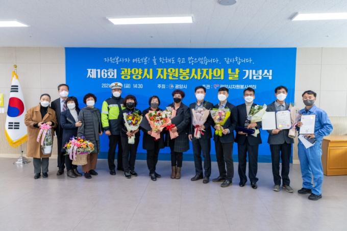 ¿ÃÇØ·Î 16ȸ¸¦ ¸ÂÀÌÇÏ´Â ±¤¾ç½Ã ÀÚ¿øºÀ»çÀÚÀÇ ³¯ Çà»ç¿¡¼ ±¤¾ç½Ã´Â Áö¿ª»çȸ ¹ßÀüÀ» À§ÇØ Çå½ÅÇÑ °³ÀÎ 14¸í, ´Üü ¹× ±â¾÷ 4ÆÀ¿¡ µµÁö»çǥâ, ½ÃÀåǥâ µîÀ» ¼ö¿©Çß´Ù.