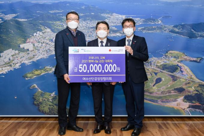 ¿©¼ö½Ã¿¡ µû¸£¸é Áö³ 3ÀÏ ¿©¼ö»ê´Ü°øÀåÀåÇùÀÇȸ ¹Ú¼ö¼º ȸÀåÀÌ ¿©¼ö½Ã¸¦ ¹æ¹®ÇØ ±Ç¿ÀºÀ ¿©¼ö½ÃÀå¿¡°Ô ÈÄ¿ø±Ý 5,000¸¸ ¿øÀ» Àü´ÞÇß´Ù.