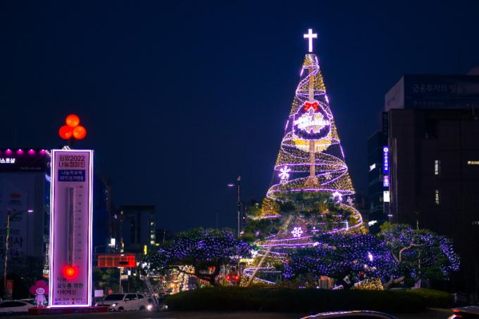 [È£³²´º½º¶óÀÎ = ¼ÀºÈ« ±âÀÚ] ¿©¼ö½Ã´Â 6ÀÏ ¿©¼ö½Ãû ¾Õ ·ÎÅ͸®±¤Àå¿¡ ³ôÀÌ 13¹ÌÅÍÀÇ ´ëÇü Å©¸®½º¸¶½ºÆ®¸®°¡ ºÒÀ» ¹àÇû´Ù.