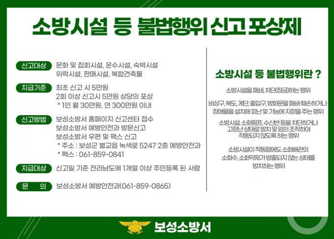 Àü¶ó³²µµ µµ¹Î ´©±¸µçÁö À§¹ÝÇàÀ§¸¦ ½Å°íÇÒ ¼ö ÀÖÀ¸¸ç ½Å°í¹æ¹ýÀº Áõ¸íÀڷḦ ÷ºÎÇÏ¿© ¹æ¹®, ¿ìÆí, ÆÑ½º, Á¤º¸Åë½Å¸ÁÀ» ÀÌ¿ëÇÏ¿© º¸¼º¼Ò¹æ¼¿¡ Á¦ÃâÇÏ¸é µÈ´Ù. ½Å°í°¡ Á¢¼öµÇ¸é ¼Ò¹æ°ø¹«¿øÀÇ ÇöÀå È®ÀÎ ÈÄ 5¸¸¿øÀÇ Æ÷»ó±ÝÀÌ Áö±ÞµÈ´Ù.