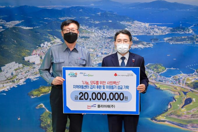[È£³²´º½º¶óÀÎ = ¼ÀºÈ« ±âÀÚ] Æú¸®¹Ì·¡(ÁÖ) ¿©¼ö°øÀå(°øÀåÀå À±±â¿±)Àº Äڷγª19 Àå±âÈ·Î Èûµç ½Ã¼³À» À§·ÎÇϰí Áö¿ª»çȸ ÀÌ¿ô»ç¶û ³ª´®À» ½ÇõÇϰíÀÚ 10ÀÏ ±èÀå±èÄ¡ 1õ¸¸ ¿ø »ó´ç 1,200§¸°ú ¼º±Ý 1õ¸¸ ¿øÀ» ¸¶·ÃÇØ ±Ç¿ÀºÀ ¿©¼ö½ÃÀå¿¡°Ô Àü´ÞÇß´Ù.