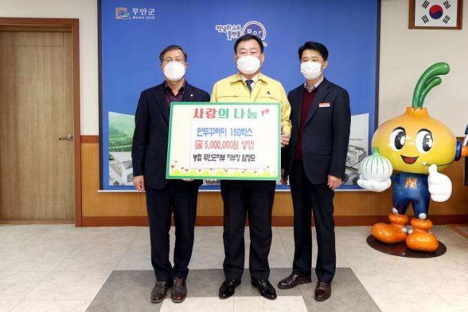 [È£³²´º½º¶óÀÎ = ¼ÀºÈ« ±âÀÚ] ¹«¾È±ºÀº Áö³ 10ÀÏ ³óÇù ¹«¾È±ºÁöºÎ(ÁöºÎÀå ÀÓÁ¤¸ð)·ÎºÎÅÍ ¿¬¸» Ãë¾à°èÃþµéÀ» À§ÇÑ 500¸¸¿ø »ó´çÀÇ ¸¸µÎ²Ù·¯¹Ì 150¹Ú½º¸¦ Àü´Þ¹Þ¾Ò´Ù°í ¹àÇû´Ù.