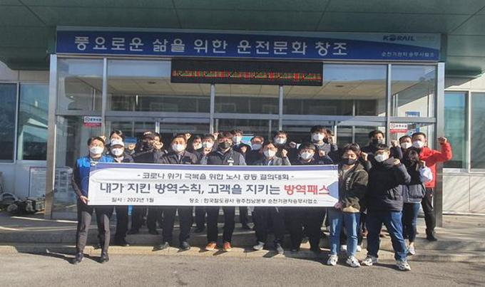 [È£³²´º½º¶óÀÎ = ¼ÀºÈ« ±âÀÚ] Çѱ¹Ã¶µµ ±¤ÁÖÀü³²º»ºÎ´Â 14ÀÏ ¿ÀÀü ¼øÃµ±â°üÂ÷½Â¹«»ç¾÷¼Ò¿¡¼ Äڷγª19 È®»ê ¹æÁö¸¦ À§ÇØ ³ë»ç °øµ¿ °áÀÇ´ëȸ¸¦ °³ÃÖÇÔ.