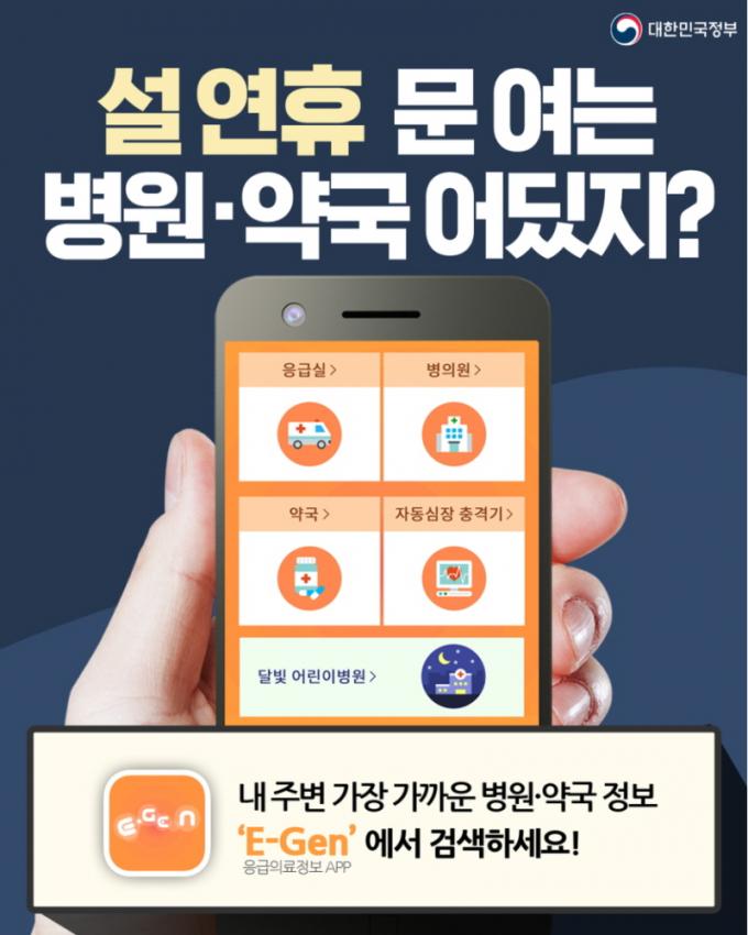 ¡®ÀÀ±ÞÀÇ·áÁ¤º¸ Á¦°ø¾Û E-GEN¡¯À» Ȱ¿ëÇÏ¸é »ç¿ëÀÚ À§Ä¡¸¦ ±â¹ÝÀ¸·Î ÁÖº¯¿¡ ¹® ¿¬ º´‧ÀÇ¿ø°ú ¾à±¹ ¿î¿µ½Ã°£ Á¶È¸°¡ °¡´ÉÇϸç, ¼±º°Áø·á¼Ò À§Ä¡¸¦ Áöµµ·Î º¼ ¼öµµ ÀÖ´Ù.