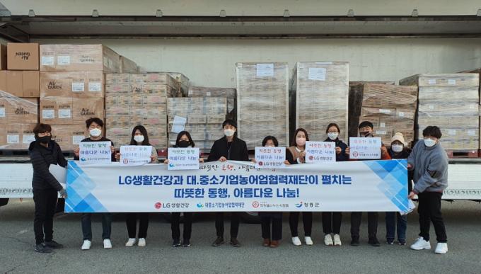 ¼³ ¸íÀý ¸Â¾Æ ÁøÇàµÈ À̹ø ¼ºÇ° ±âŹÀº ÀåÈﱺ¹ÎÀÇ Äڷγª19 ±Øº¹À» ±â¿øÇÏ´Â ¶æµµ ÇÔ²² ´ã¾Ò´Ù. ±âʹ°Ç°Àº LG»ýȰ°Ç°°ú ´ë¡¤Áß¼Ò±â¾÷¡¤³ó¾î¾÷Çù·ÂÀç´Ü¿¡¼ Áö¿øÇÑ ÈÀåǰ, KF94¸¶½ºÅ©, ¼¤ÇÁ, ÁöÆÛ¶ô, ¹°Æ¼½´, ¼¶À¯À¯¿¬Á¦, ¹Ùµð¿ö½Ã µîÀÌ´Ù.