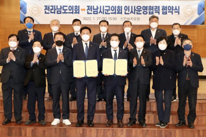 [È£³²´º½º¶óÀÎ = ¼ÀºÈ« ±âÀÚ] Àü³²µµÀÇȸ´Â 27ÀÏ, ¸ñÆ÷ ½Å¾ÈºñġȣÅÚ¿¡¼ Áö¹æÀÚÄ¡¹ý ÀüºÎ°³Á¤¹ý·üÀÌ ½ÃÇàµÊ('22. 1. 13.)¿¡ µû¶ó Àü³²½Ã±ºÀÇȸÀÇÀåÇùÀÇȸ¿Í ¿øÈ°ÇÑ Àλç¿î¿µÀ» À§ÇÑ ¾÷¹«Çù¾àÀ» ü°áÇß´Ù.
