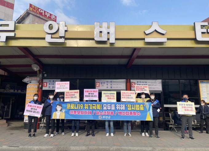 ¶ÇÇÑ 27ÀÏ¿¡´Â ¹«¾È±º Àç³¾ÈÀü´ëÃ¥º»ºÎ °ü°èÀÚµéÀÌ Àü³²µµÃ» ¾Õ »ç°Å¸®¿¡¼ Ãâ±Ù½Ã°£ Á÷ÀåÀÎ µîÀ» ´ë»óÀ¸·Î °Å¸® Ä·ÆäÀÎÀ» ÅëÇØ ¼³ ¿¬ÈÞ ¡®Àá½Ã ¸ØÃ㡯¿¡ Àû±Ø µ¿ÂüÇØ ÁÙ °ÍÀ» È£¼ÒÇßÀ¸¸ç, ÀÌÈÄ ¹«¾ÈÀ¾ ¹ö½ºÅ͹̳ΠÀÏ¿ø¿¡¼ °Å¸® È«º¸¸¦ ÀÌ¾î ³ª°¬´Ù.