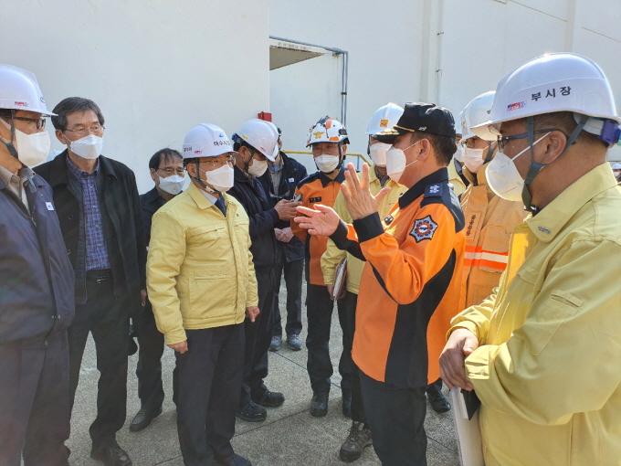 [È£³²´º½º¶óÀÎ = ¼ÀºÈ« ±âÀÚ] ±Ç¿ÀºÀ ¿©¼ö½ÃÀåÀÌ 11ÀÏ ¿ÀÀü ¿©¼ö±¹°¡»ê´Ü ³» ÇÑ °øÀå¿¡¼ ¹ß»ýÇÑ Æø¹ß»ç°í ÇöÀåÀ» ã¾Æ »ç°í¼ö½À ¹× ÀθíÇÇÇØ »óȲÀ» Á¡°ËÇϰí ÀÖ´Ù.