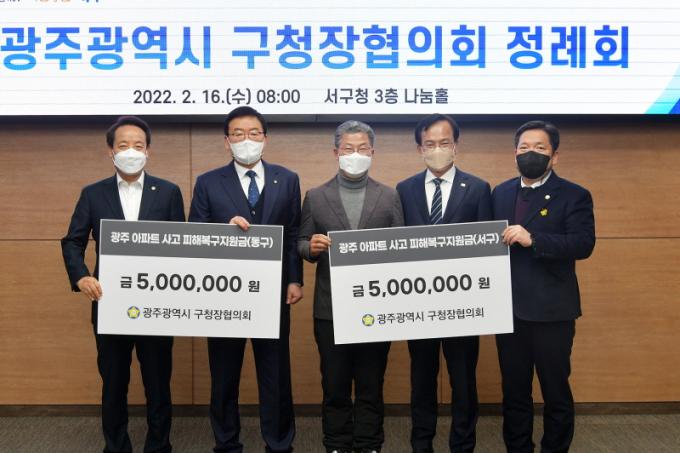 16ÀÏ ±¤Áֽñ¸Ã»ÀåÇùÀÇȸ(ȸÀå ¹®ÀÎ)¿¡ µû¸£¸é À̳¯ ¿ÀÀü ¼±¸Ã»¿¡¼ Á¤·Êȸ¸¦ °®°í µ¿±¸¿Í ¼±¸¿¡ °¢°¢ 500¸¸ ¿øÀÇ Áö¿ø±ÝÀ» Àü´ÞÇϱâ·Î Çß´Ù.