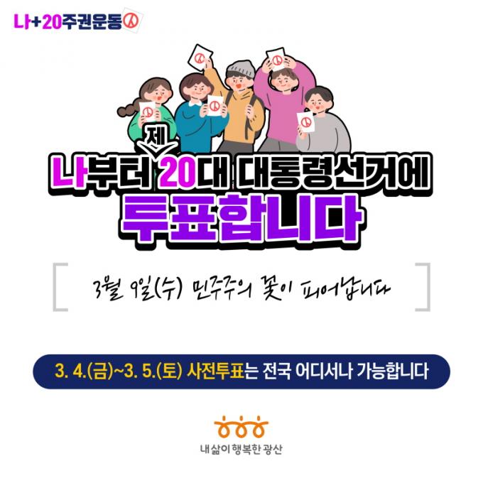 [È£³²´º½º¶óÀÎ = ¼ÀºÈ« ±âÀÚ] ±¤Áֽà ±¤»ê±¸°¡ Á¦20´ë ´ëÅë·É ¼±°Å(3¿ù9ÀÏ)¸¦ ¸Â¾Æ ¸¹Àº ½Ã¹ÎÀÌ ¼ÒÁßÇÑ ÇÑ Ç¥¸¦ ²À Çà»çÇÒ ¼ö ÀÖµµ·Ï ´Ù¾çÇÑ ÅõÇ¥À² Á¦°í ¹æ¾ÈÀ» ÃßÁøÇÑ´Ù.
