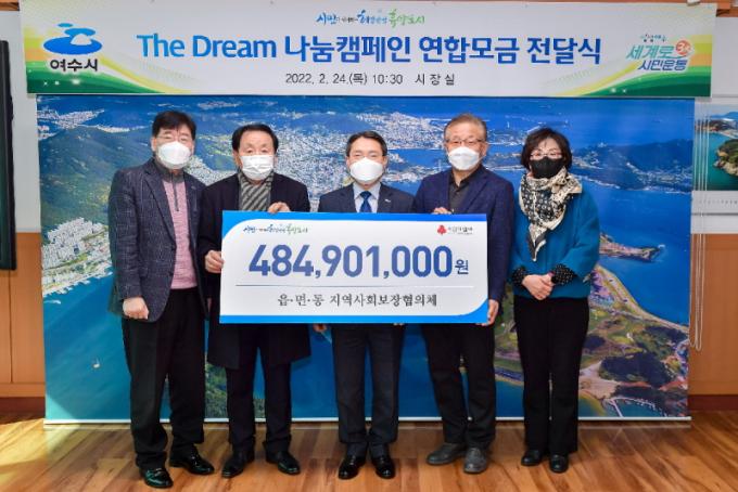 [È£³²´º½º¶óÀÎ = ¼ÀºÈ« ±âÀÚ] ¿©¼ö½Ã 27°³ À¾¸éµ¿Áö¿ª»çȸº¸ÀåÇùÀÇü(À§¿øÀå ÇÑ¿Áõ)´Â Áö³ 24ÀÏ ½ÃÀå½Ç¿¡¼ Áö³ ÇÑ ÇØ µ¿¾È ¸ð±ÝÇÑ 4¾ï 8,490¸¸ ¿øÀÇ ¿¬ÇÕ¸ð±Ý ÈÄ¿øÁõ¼¸¦ ¿©¼ö½Ã¿¡ Àü´ÞÇß´Ù°í ¹àÇû´Ù.
