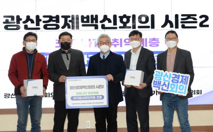 ±¤»ê°æÁ¦¹é½ÅȸÀÇ´Â 2ÀÏ¿¡¼ ±¸Ã» 2Ãþ »óȲ½Ç¿¡¼ Àü´Þ½ÄÀ» °®°í, ±¤»ê±¸ »ê´ÜÇùÀÇȸ, °ñ¸ñ»ó±Ç »óÀο¬ÇÕȸ µî¿¡ ÀÚ°¡°Ë»ç Áø´ÜŰƮ 1¸¸ °³¸¦ Àü´ÞÇß´Ù. 16¹øÂ° ±¤»ê°æÁ¦¹é½ÅÀÌ´Ù.