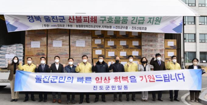 [È£³²´º½º¶óÀÎ = ¼ÀºÈ« ±âÀÚ] Áøµµ±ºÀÌ ÃÖ±Ù ½É°¢ÇÑ »êºÒ ÇÇÇØ¸¦ ÀÔÀº Àڸŵµ½Ã °æºÏ ¿ïÁø±º¿¡ 3,000¸¸¿ø »ó´çÀÇ ±ä±Þ ±¸È£¹°Ç°À» Àü´ÞÇß´Ù°í 11ÀÏ ¹àÇû´Ù.