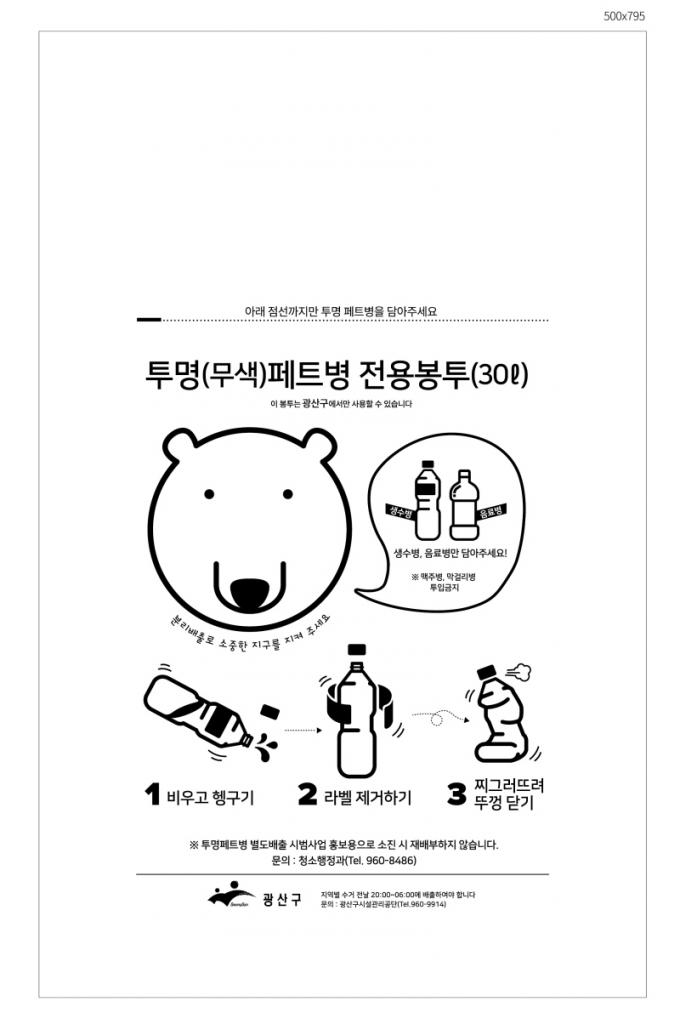½Ã¹ÎÀº ¾È³»¹®À» Âü°íÇØ Åõ¸íÆäÆ®º´À» ºÀÅõ¿¡ ¸ð¾Æ ÇØ´ç Áö¿ª ÀçȰ¿ëǰ ¼ö°Å ¿äÀÏ¿¡ ¸ÂÃç ¹èÃâÇÏ¸é µÈ´Ù. ´Ü, ¸ÆÁÖº´, ¸·°É¸®º´ µî À¯»öÆäÆ®º´°ú Æ÷Àå¿ë ÄÅ, Åõ¸í Æ÷Àå¿ë±â µî ÀÏ¹Ý ÇÃ¶ó½ºÆ½Àº ÇÔ²² ´ãÀ¸¸é ¾È µÈ´Ù.