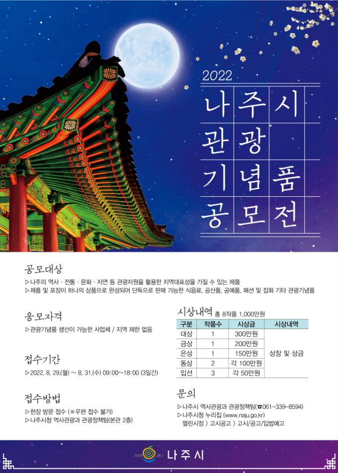 [È£³²´º½º¶óÀÎ = ¼ÀºÈ« ±âÀÚ] ³ªÁÖ½Ã(½ÃÀå °ÀαÔ)°¡ ³ªÁÖÀÇ ¸ÚÀÌ ´ã±ä µ¶Æ¯ÇÏ°í ½Ç¿ëÀûÀÎ ¿ì¼ö °ü±¤±â³äǰÀ» ¹ß±¼Çϱâ À§ÇØ ¡®2022³â ³ªÁֽà °ü±¤±â³äǰ °ø¸ðÀü¡¯À» °³ÃÖÇÑ´Ù.